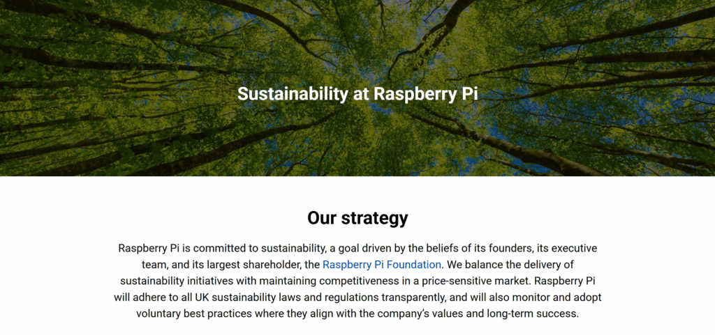 Raspberry Pi sustainability portal, which helps us to be more transparent about our sustainable practices and invites the wider Raspberry Pi community to have their say and keep us accountable.